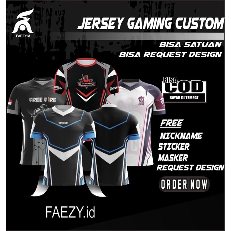 Best Seller Pakaian di Kabupaten Tanggamus Jersey Gaming Custom Desain Full Printing / Bisa Bawa Desain Sendiri Free Masker & Nickname Sticker dari Faezy.id Kab. Lumajang