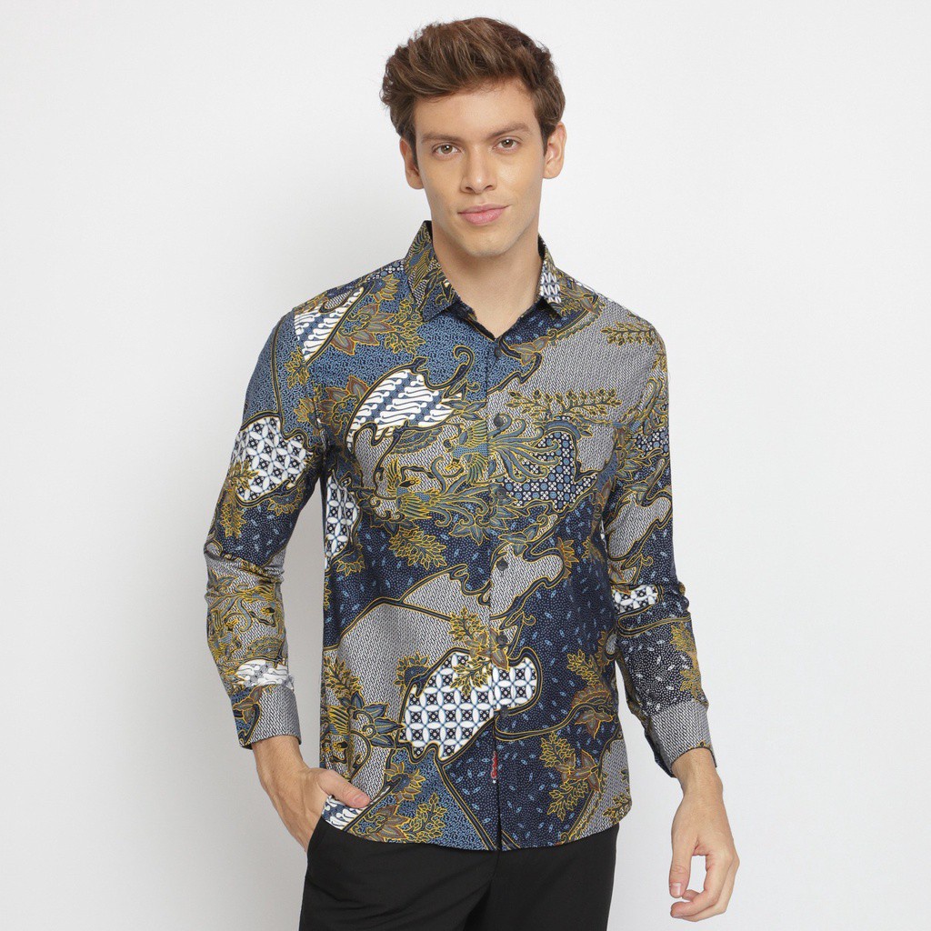 Name: Kemeja Batik Pria Atasan Batik Pria Lengan Panjang Warna Navy